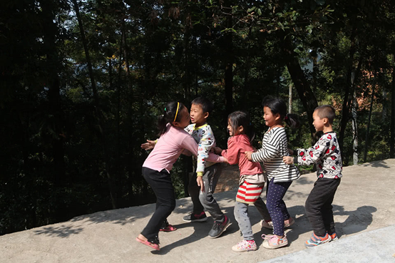 2017年11月2日,只有一个教师和五名学生的广西柳州市融水苗族自治县红水乡高文村加林屯教学点,学生们在玩游戏。