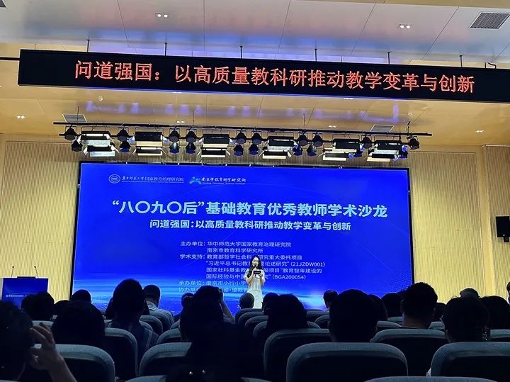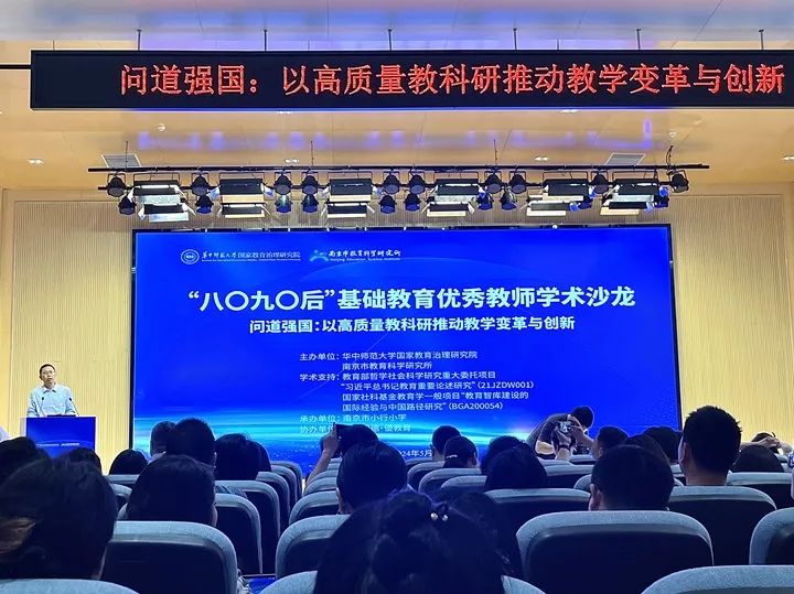 本次学术沙龙以“问道强国:以高质量教科研推动教学变革与创新”为主题,由华中师范大学国家教育治理研究院联合南京市教育科学研究所共同主办,来自全国高等院校、科研机构近百余人参会,旨在为全国“八〇九〇后”基础教育优秀青年教师搭建展示成果、分享经验、促进成长的高端学术交流平台,促进基础教育领域青年教师的专业成长与创新发展。