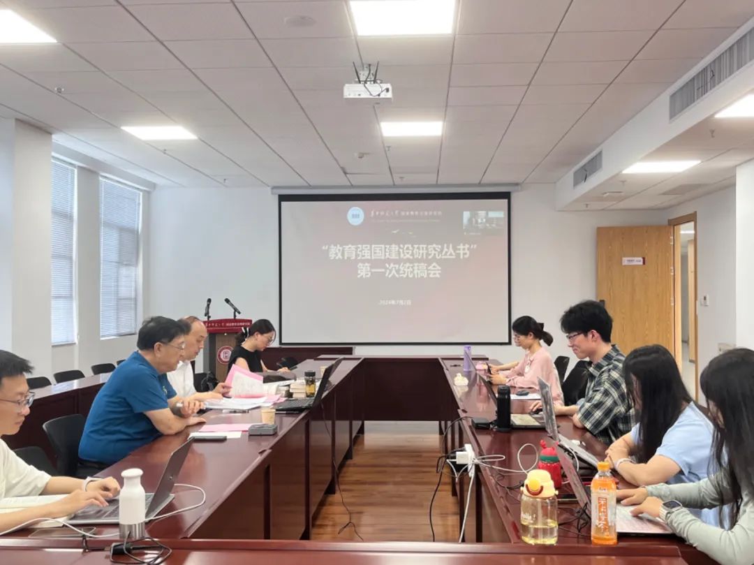 2024年7月2日,我院在华中师范大学文科综合楼北楼10楼国家教育治理研究院会议室召开了“教育强国建设的国际经验与中国路径研究丛书”第七次编写推进会暨第一次统稿会。此次会议采取线上线下相结合的形式,就各分册的编写进展及存在问题进行研讨,旨在推动丛书编写和出版工作的进一步深入。