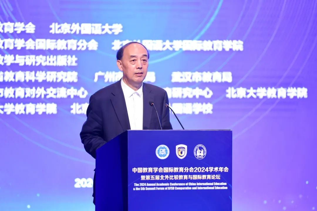 10月24日,由中国教育学会、北京外国语大学指导,中国教育学会国际教育分会、北京外国语大学国际教育学院主办,外语教学与研究出版社承办的“中国教育学会国际教育分会2024学术年会暨第五届北外比较教育与国际教育论坛”在北京召开。第十三届全国人大常委会委员、中国教育学会副会长、华中师范大学国家教育治理研究院院长周洪宇应邀出席。