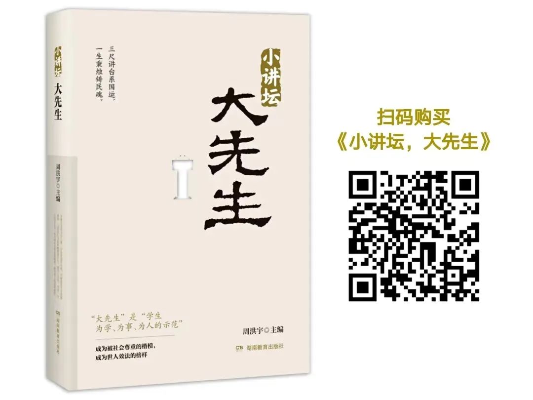 周洪宇在《小讲坛,大先生》(湖南教育出版社)一书中认为,“新时代‘大先生’要有渊博的知识和良好的教育教学能力,更要有坚定的理想信念、深厚的教育情怀、真诚的仁爱之心、良好的学识水平和强大的人格魅力”。此外,“大先生”也可以说是“先生之先生”,新时代,我们呼吁广大教师学习“大先生”,争当“大先生”,发挥大作为。