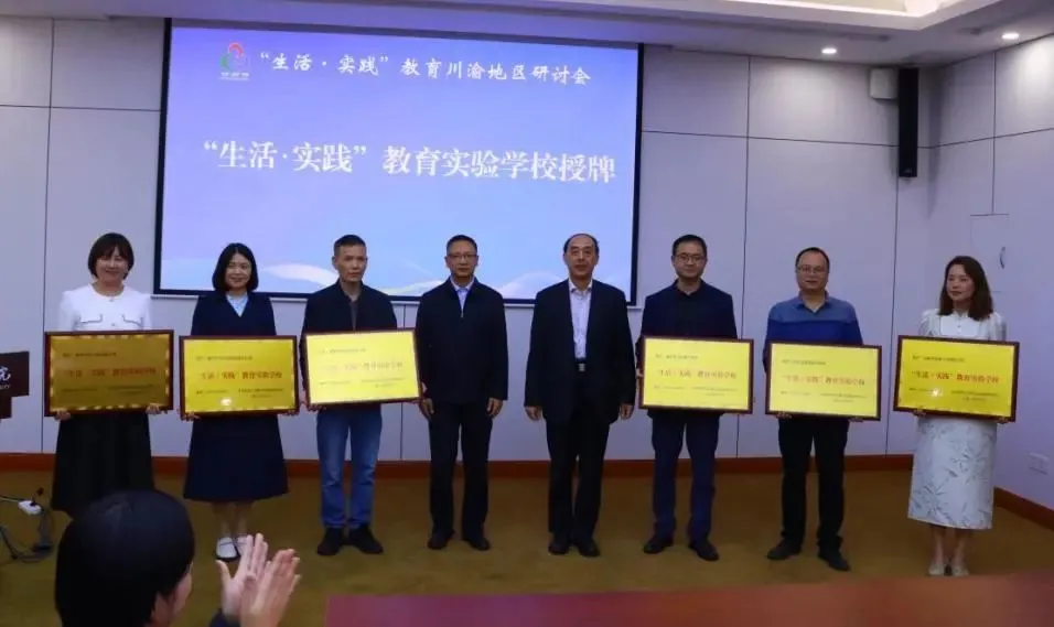 随后,周洪宇教授、付川副书记、薛娟副校长、王小华委员分别为成都市草堂小学西区分校、四川金堂实验中学校、重庆市万州第三中学、重庆市万州区百安小学、重庆市万州区电报路幼儿园、重庆市合川区东渡小学、重庆市九龙坡区明诚育才学校、重庆市万州区鸡公岭小学、重庆市万州区中加友谊小学、重庆市万州区电报路小学、重庆市万州区红光南滨小学、重庆市两江新区思湖山幼儿园等学校授牌,并祝贺以上学校正式加入“生活·实践”教育实验学校。