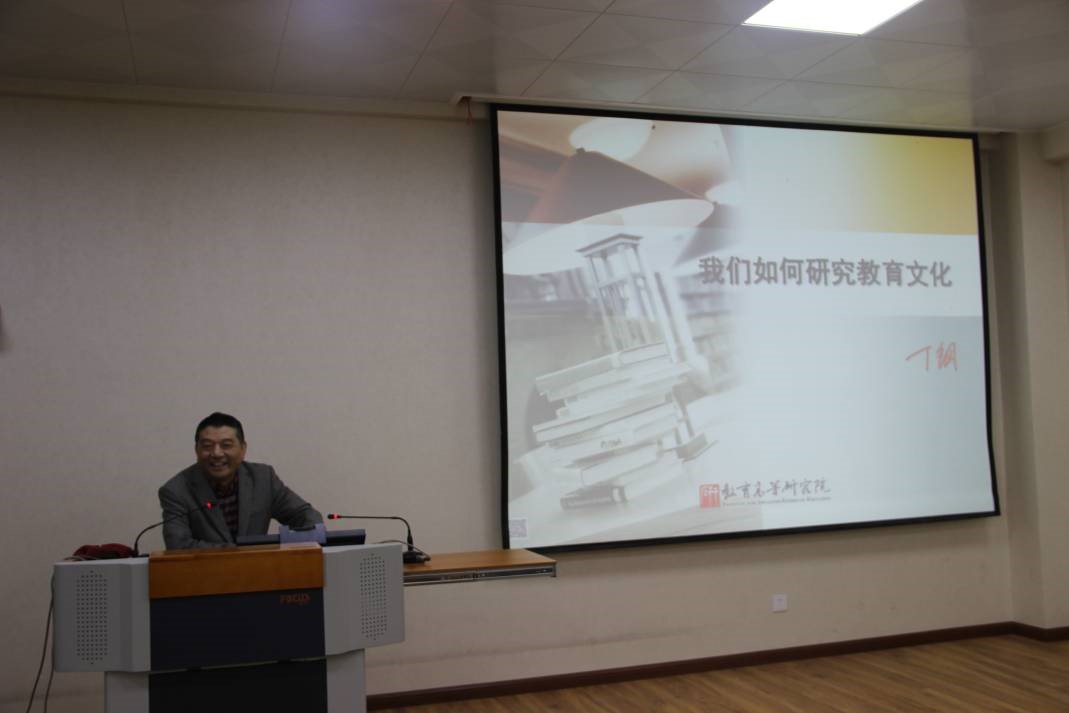 紧接着,丁钢教授讲述了他对于文化的理解,在他看来,文化可以理解为生活方式,这种生活方式植根于实际的文化经验与处境。他将教育直接视为一种文化蕴含复杂的历史现象并希望通过对教育历史的文化内涵的内涵的考察来揭示教育的文化功能与意义。正是从这一文化视野出发,他反复强调要理解中国教育,就必须引入中国文化的关照,要想弄清中国文化史,就必须从教育切入。他借用历史学家卡尔对历史学与社会学关系认识的表达方式,提出了教育文化研究的期望,亦即教育文化研究的新旨向,即教育研究越具有文化性,文化研究越具有教育性,就越有利于彼此乃至教育学科的发展。在谈到教育文化研究方法和新路径时,他指出,应充分运用社会学、历史学、人类学、艺术学、文化研究、叙事研究等领域的前沿视野,以参与式观察、教育叙事、图像证史、口述历史、田野工作、话语分析等多种方法来推进研究,并结合自己的亲身经历和研究生培养经历,重点解说了“口述历史”、“日常生活与生活史”、“田野工作”、“图像、影像、声音”和“叙事”研究这五种研究方法,为在场的学生打开了一扇更为广阔的教育学术视野,一睹了教育学术大家的风采。