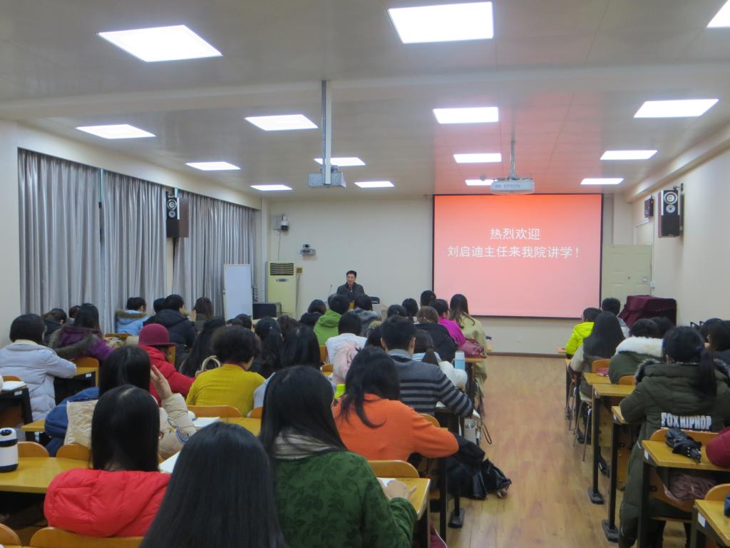 (通讯员:刘婷婷 编辑:孙丹)12月15日下午4:30,由湖北省教育政策研究中心、华中师范大学中小学发展研究中心协办的教育学院第136期“学在田楼”学术报告会在田家炳楼J502教室举行。人民教育出版社主任编辑、《课程•教材•教法》编辑部主任刘启迪老师受邀出席,作了题为“课程文化自觉:兼谈文章自觉”的学术报告。报告会由罗祖兵教授主持,但武刚老师、姚林群老师、叶庆娜老师等以及我院硕博士研究生、其它院系的部分研究生聆听了报告。