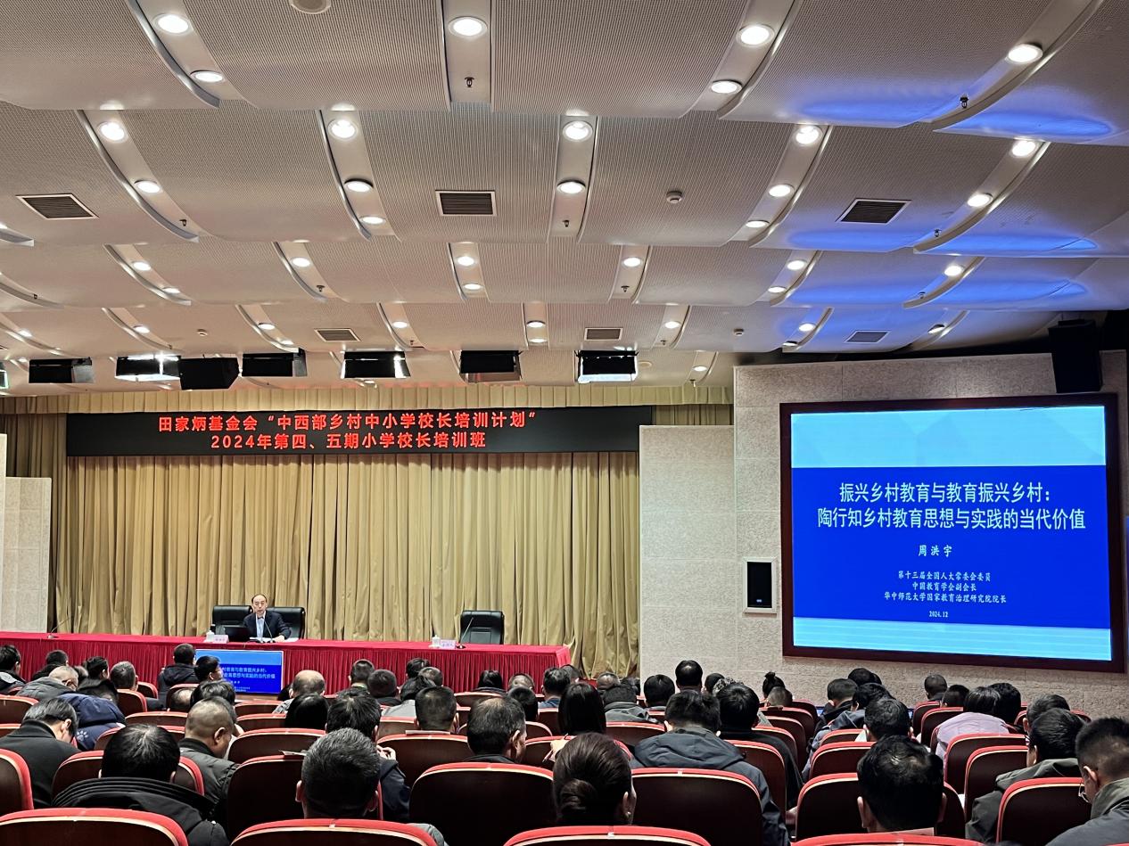12月7日,周洪宇院长受邀参加田家炳基金会“中西部乡村中小学校长培训计划”,以《振兴乡村教育与教育振兴乡村:陶行知乡村教育思想与实践的当代价值》为题,为两百多位来自中西部的乡村中小学校长作了开班第一讲。周洪宇院长在课堂上生动讲述了陶行知在乡村办学的经历,指出陶行知是20世纪初海外求学的知名教育家中没有选择精英道路,而是扎根乡村办学的第一人,现场听课学员大为触动。随后周院长进一步阐述了我们学习陶行知教育思想的当代价值,学员纷纷表示受益匪浅。